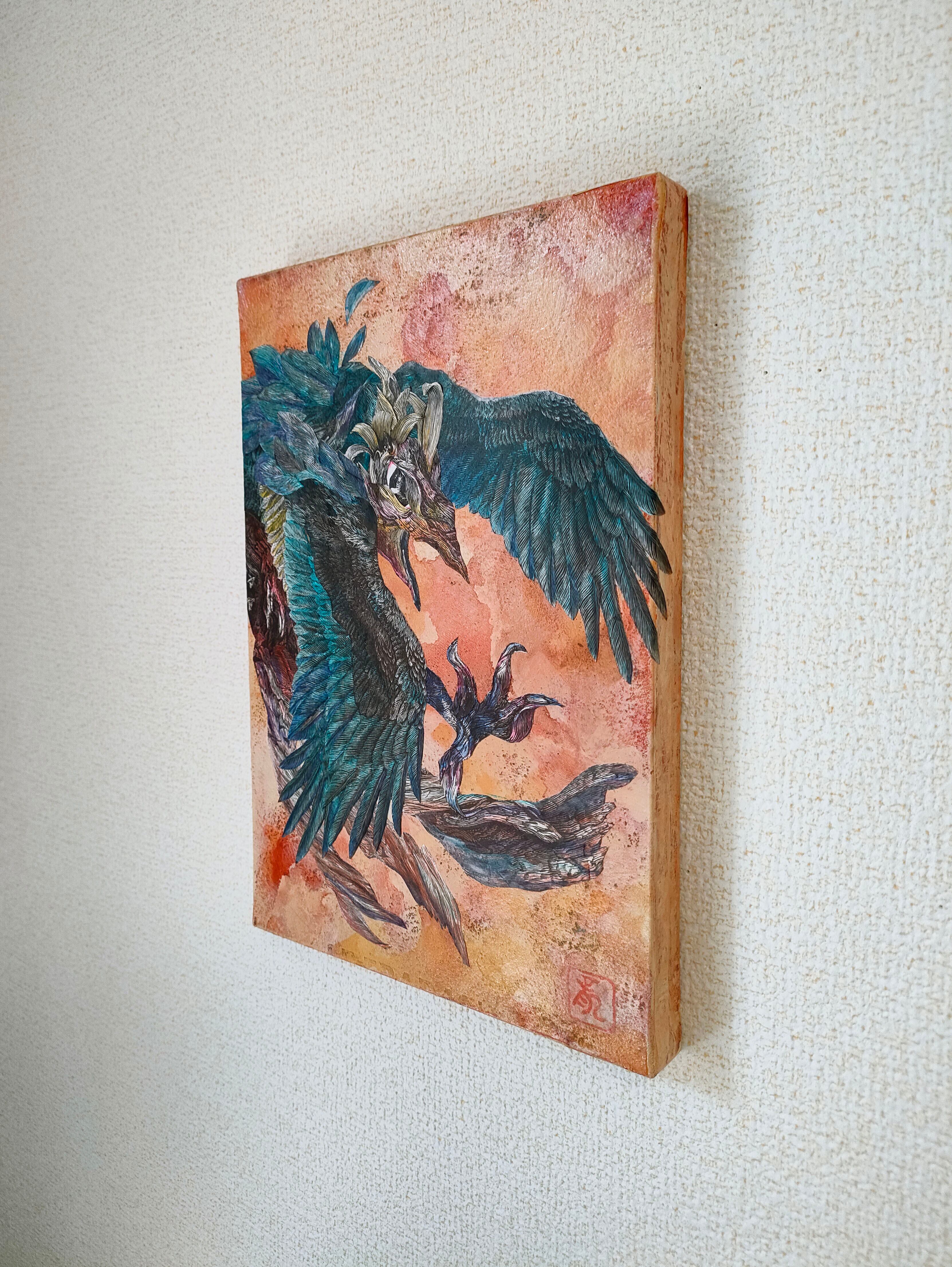 一声鳴くとその声が世界中に響き渡り、災いや悪い兆候を消し去る霊鳥です。平和と繁栄の象徴としてご鑑賞ください。